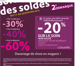 2 eme demarque pour les soldes sur la boutique en ligne marionnaud .. avec de bonnes affaires : par exemple l’eau de toilette l »homme de dior avec 30% de remise (30,40 euros en vapo 40ml , 38 en vapo 60 ou 50 en vapo 100ml ) ..