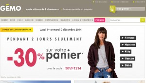 Mode ! 30 pourcent sur le site gemo les 1er et 2 décembre