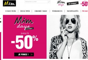 50 pourcent de réduction sur de nombreux articles sur la boutique en ligne Mim … Opération « Mim days » qui peut donc interesser les femmes qui aiment les vetements , accessoires de la marque ..
