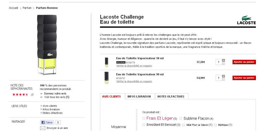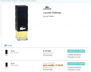 Moins de 25 euros l’eau de toilette Lacoste Challenge 50ml contre autour de 37 normalement