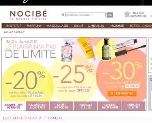 Encore une offre parfums , produits de beautés avec des codes de réduction à utiliser chez nocibe : OFFRE20 donne 20 % de remise à partir de 19 euros d’achats, OFFRE25 donne 25% de remise à condition d’acheter pour plus de 99 euros et OFFRE30 donne 30% de remise si on achete pour plus de 149 euros …