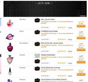 Cliquez ici pour voir toutes les eaux de toilettes et parfums concernés (il faut ajouter le produit dans le panier pour avoir la deuxieme remise de 25%