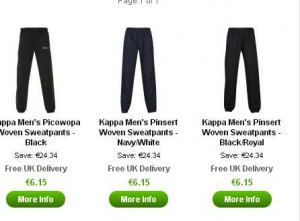 Apres les chaussures, le site zavvi brade maintenant les pantalons de sport kappa pour hommes : 6 euros 15 port inclu .. Il y a 3 modeles deux noirs et un bleu .. Modeles Picowopa et Pinsert