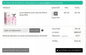Encore un super prix pour un parfum : l’eau de parfum Jeanne de Lanvin en vapo de 50ml est à 31.46 – 5 euros avec le code promo « 5FEEL30 » … Cela fait donc un prix à payer de 26.45 euros port inclus..