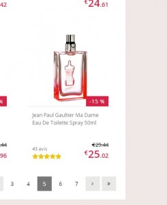 On peut toujours voir l’eau de toilette femmes gaultier madame 50ml à 25 euros ( voir ) , azzaro limited hommes 100ml à 22 euros ( voir ) , des coffrets ck one à 22 euros , mont blanc individuel 50ml à 21 euros ( voir ) , lanvin rumer 50ml à 25 euros …. et biens d’autres