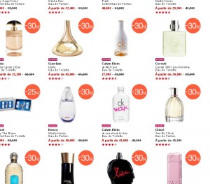 Il y a ainsi idylle de gerlain 50ml à 46 euros au lieu de 66 , l’eau de toilette madly de kenzo à 29.3 au lieu de 41 en vapo 30ml , catch me de cacharel à 31.1 au lieu de 44 …. et bien d’autres