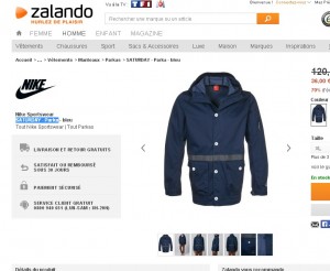 Toujours des prix ultra bas sur zalando dans les soldes sur certains vetements : ainsi on peut voir une parka pour homme de la marque Nike à 36 euros seulement .. Parka Saturday bleue à capuche disponible dans les tailles M, L, XL, XXL ..