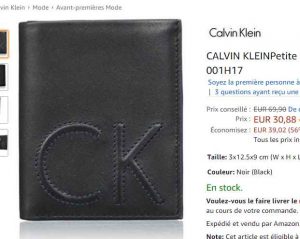 Dans les commentaires, on peut voir que le portefeuille est livré dans une boite noire avec le logo calvin klein sur le dessus …