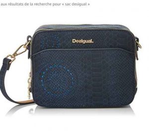 Il s’agit du sac DESIGUAL JASPER AGORA vendu à moins de 30€ sur amazon dans la couleur bleue alors qu’il est affiché à 59.9€ sur le site officiel desigual … et aussi sur zalando , spartoo