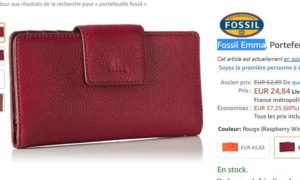 Dans les soldes amazon, on peut voir un très bon prix pour un portefeuille en cuir de la marque américaine FOSSIL : 24.8€ le portefeuille FOSSIL EMMA