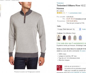 Encore un bon prix pour un pull de la marque américaine timberland qui est assez chère normalement … On peut voir à 36 euros le pull timberland williams river avec une ouverture sur le haut zippée …