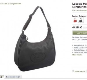 Si vous aimez la marque lacoste, à priori tres bon prix sur le site javari allemagne qui propose un sac à main de la marque à moins de 45 euros port inclu ..