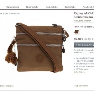 Les modeles kipling alvar S semblent se vendre un peut partout autour de 40 euros ( sur zalando par exemple … voir les sacs sur zalando – intéressant de lire les avis qui sont tres positifs )