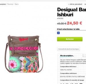 24.5 euros le sac bandouliere desigual bandolera ishburi sur le site officiel de la marque … Alors que les soldes sur amazon et les super prix concernant la marque desigual sont terminés, on peut en fait encore trouver de bonnes affaires sur la marque espagne, sur le site officiel …