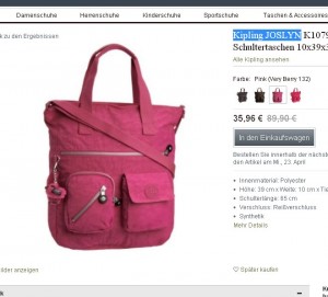 Un super prix pour ce sac vendu sur amazon.fr pres de 90 euros .. et affiché sur le site officiel kipling à 85 euros ..