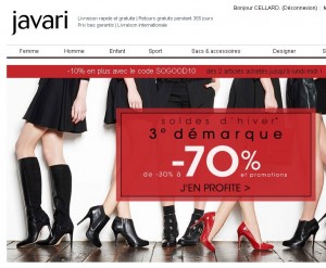 Nouveau code promo chez javari à l’occasion des soldes .. Le coupon « SOGOOD10 » donne 10% de remise supplementaire à condition d’avoir au moins deux articles dans son panier ..