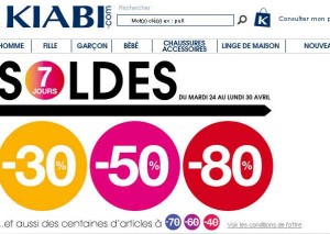 Supers soldessur le site kiabi.com avec jusqu’à 80% de remise sur des vetements , chaussures et accessoires pour adultes et enfants ..