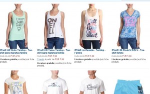 Si vous aimez la marque des surfeurs O Neill, il y a de super affaires dans les soldes sur amazon sur les vetements de cette marque .. Ainsi il y a plusieurs tops et teeshirt pour femmes à moins de 6 euros ..