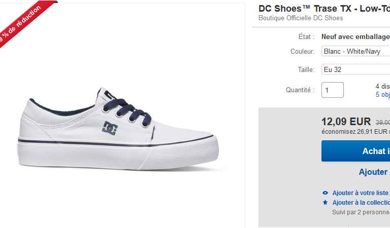 Super affaire pour des sneakers de la marque dc shoes : 12€ les Trase TX de couleur blanche sur ebay , vendues par dcshoes ..