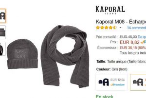 Super affaire pour un futur cadeau à faire à un homme , ou pour s’offrir à soit meme : 7.2€ l’ensemble Echarpe + Bonnet de la marque Kaporal …