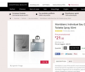 Encore une super affaire pour une eau de toilette : Mont blanc Individuel pour hommes , en vapo de 50ml est à 21.52 euros port inclus dans la braderie sur feelunique …