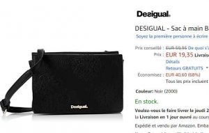 Pour les abonnés premium le prix passera à 18.35 avec la livraison lente … Sans doute l’un des prix les plus bas jamais vu pour un sac de la marque DESIGUAL …