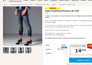 On peut voir ainsi par exemple le jeans lee boyfriend pour femmes à 14.24 euros (dispo en 36 et 38 ) … Voir ce jeans