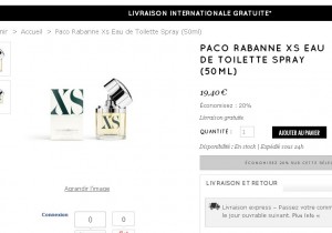 Mega affaire pour une eau de toilette pour hommes : 19.4 euros port inclus le vapo de 50 ml de Paco Rabanne XS …