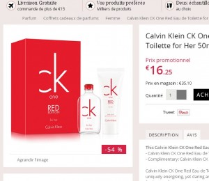 Super prix parfum : coffret ck one red for her 50ml à 16 euros port inclus