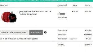 Et on peut donc voir voir l’eau de toilette de gaultier vendue vraimeent pas chère à 24.84 euros , en utilisant le code de réduction , le prix passe à 19.87 euros seulement ..