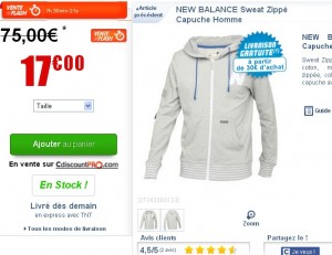 17 euros seulement le sweat gris, avec fermeture eclair, deux poches, capuche ..