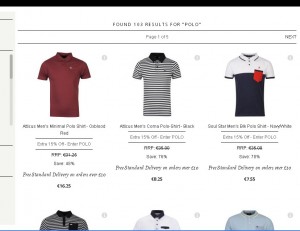 On peut voir ainsi des polos gola à 10 euros l’unité .. si on en prend deux et qu’on utilise le code de réduction on ne paiera donc que 17 euros ..
