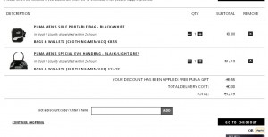 Sur le site thehut actuellement, pour l’achat d’un article de la marque Puma on a en prime gratuitement une sacoche, un porte monnaie , un bonnet ou un lot de chaussettes de la marque Allemande ..