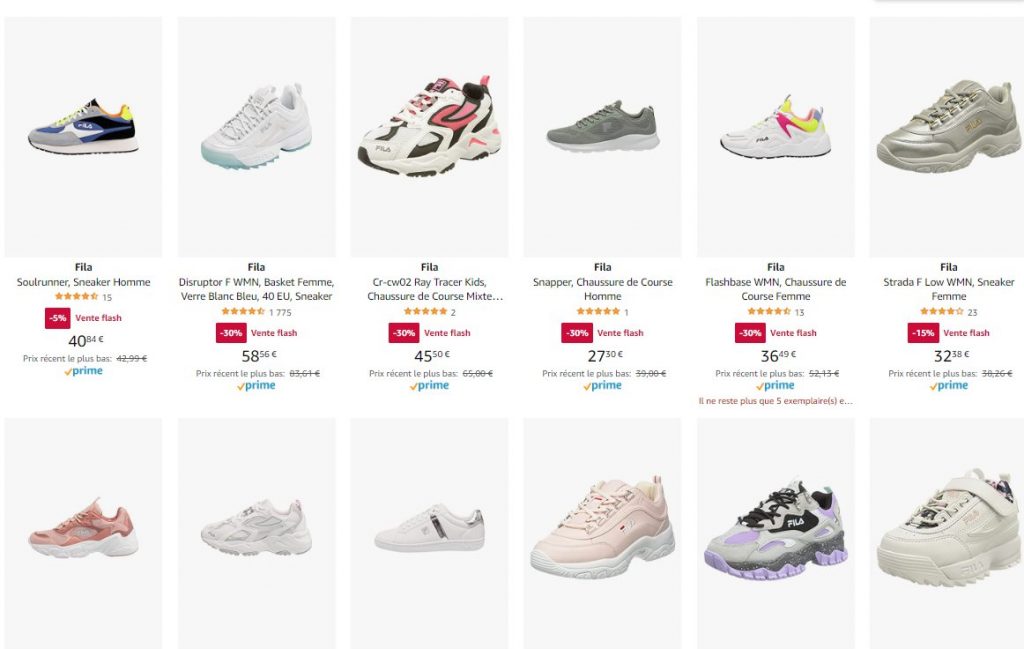 Sur amazon, il y a une vente flash concernant des nombreuses paires de chaussures Fila .. avec des chaussures pour adultes ou enfants ..
