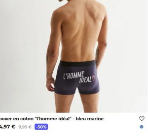 Mais egalement des articles pour hommes , boxers , pyjamas … et dans ceux ci des boxers à textes sympas