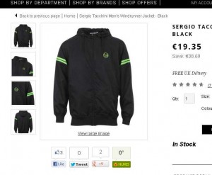 Encore une bonne affaire vétement sur le site anglais thehut qui livre gratuitement en France .. La veste Sergio Tacchini vendue deja à un super prix de 18.15 euros passe à 15.43 euros en utilisant le code promo « JG15 » ..