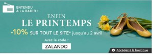 Si vous aimez acheter des chaussures, vetements sur Zalando , il y a juqu’au 2 avril un code de reduction donnant 10% de remise sur tous le site . C’est le code ZALANDO ..