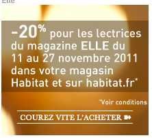 Du 11 au 27 novembre , il est possible d’obtenir 20% de reduction dans les magasins habitat et sur le site habitat.fr ..