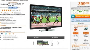 Bon plan si vous cherchez une tv grand ecran pas trop chere .. Alors que la tv philips 42 pouces se vend generalement entre 440 et 500 euros port inclu (449 darty , 440 amazon ,471 surcouf .. )