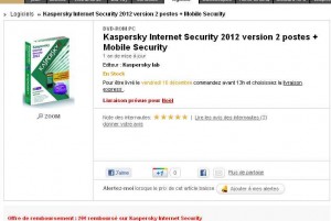Or il s’avere que l’un des antivirus concerné est vendu 19.9 euros seulement sur le site web de la fnac .. Il s’agit de Kaspersky internet security 2012 2 postes + mobile security ..