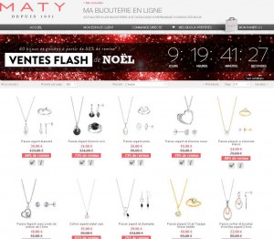 Peut etre une offre interessante pour les cadeaux de noel: sur la bijouterie en ligne Maty se deroule une vente flash avec de nombreux bijoux en promo .. Cependant il s’agit à priori uniquement de bijoux en argent et plaqués .. pas de bijoux en or pur ..