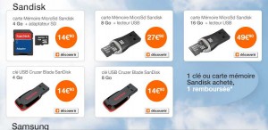 En effet pour l’achat de 2 cartes mémoires, 2 clés usb ou d’une carte mémoire et d’une clé usb et d’une carte mémoire de la marque sandisk , le moins cher est remboursé en différé :