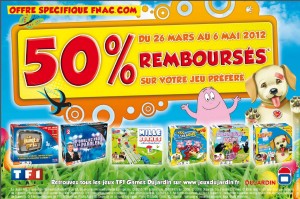 En effet pour un achat du 26 mars au 6 mai , on peut se faire rembourser en différé 50% du prix d’achat d’un jeu de societé de la marque ..