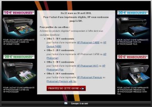20 euros pour l’achat d’une : HP Photosmart C4780 ou HP Photosmart (vendue 89 euros chez darty port inclu )