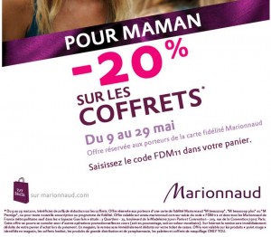 Du 9 au 29 mai , pour les possesseurs de la carte de fidelité gratuite Marionnaud , il y a 20% de reduction immédiate sur tous les coffrets de parfums, eau de toilette ..