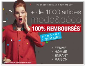 Offre 100 pourcent remboursés chez 3 suisses jusqu’au 3 octobre