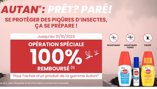 Dans la limite de 9000 demandes et jusqu’au 31 octobre 2023 , on peut se faire remboursement l’achat d’un produit de la marque Autan parmi les references suivantes
