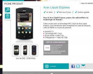 Smartphone acer liquid express qui revient à moins de 100 euros avec un forfait sosh sans engagement