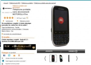Smartphone Motorola Fire à moins de 95 euros sans simlockage .. achat à faire avant le 22/02