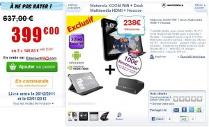 Encore un bon plan concernant la tablette tactile android motorola Xoom : chez cdiscount, le pack regroupant la tablette + une housse et un dock multimedia est à 399 euros ..